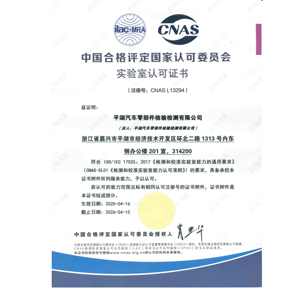 公司建立了完善的质量管理体系,已获得检验检测机构资质认定(CMA),通过了中国合格评定国家认可委员会(CNAS)实验室认可,具有专业的技术和服务团队。我们将继续秉承专业、公正、服务、诚信的服务理念,为高质量发展传递信任,为汽车零部件产业发展保驾护航!